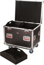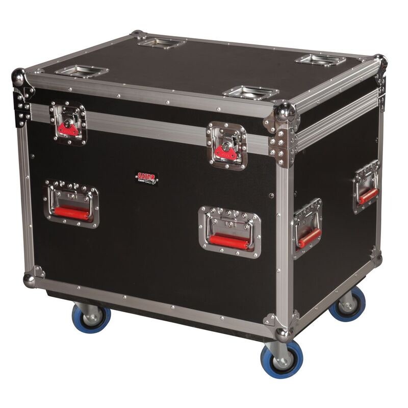 Includes three adjustable dividers and two lift-out trays, allowing you to separate different gear components. The top tray measures 19.25″ × 12.25″ × 3.75″ (approx. 49 × 31 × 9.5 cm). Four integrated casters, two of which are lockable, make it easy to move. Recessed top surfaces enable stacking during transport or storage.