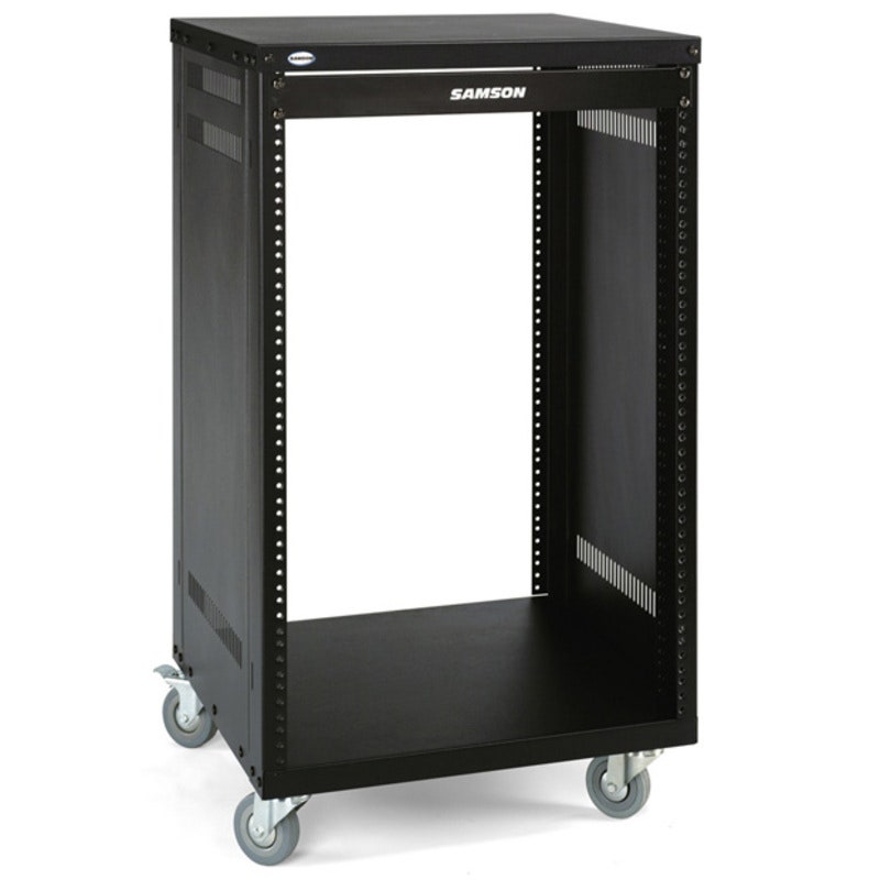 Tukeva 16U teräksinen räkkivaunu lukittavilla 75mm kumipyörillä. Räkissä on kiinnityskiskot eurooppalaisilla ja amerikkalaisilla ruuvikierteillä (eri puolilla). Räkin sivut ovat umpinaiset ja varustettu tuuletusaukoilla. Mukana 1U peitelevy.