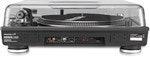 The cover features a smoked transparent surface, allowing the turntable to remain visible while protected. Made from polycarbonate, it combines durability with lightweight design.