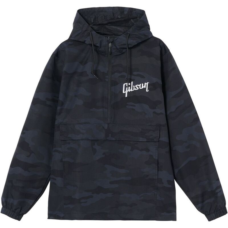 A lightweight and functional Gibson windbreaker in dark camo finish. Designed for everyday wear or life on the road, this jacket offers weather protection with signature Gibson style. Made from water-resistant fabric and featuring an adjustable hood, full front zip, and zippered pockets. Unisex 3XL fit for comfort and freedom of movement.