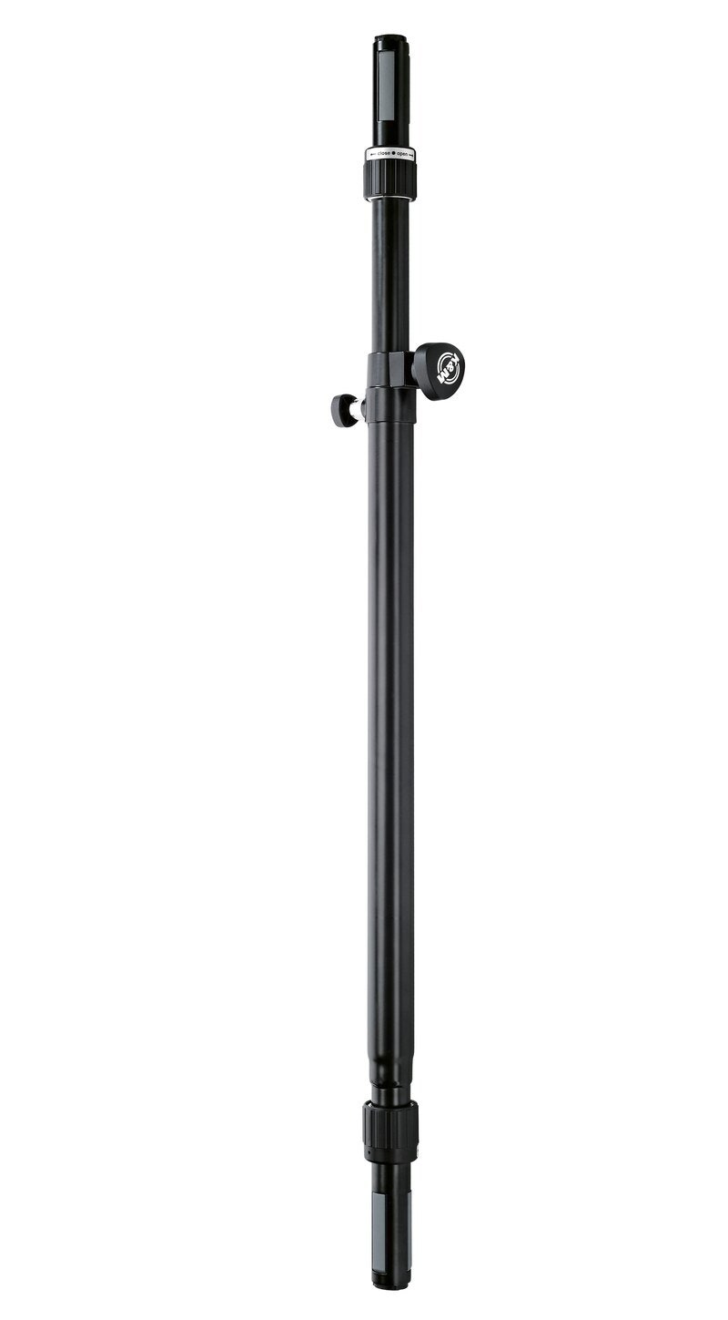 Tukeva teräksinen jalustaputki, jolla yhdistät subwooferin ja satelliittikaiuttimet. Korkeudensäätö on turvallista jousikuormitteisen lukitusruuvin ja turvapultin yhdistelmällä. Laajenevat muovikiilat varmistavat, että satelliittikaiuttimet eivät tärise jalustaputken päässä. Kaiuttimen kiinnittäminen on helppoa ja tapahtuu kätevän rengaslukon avulla, joka asetetaan paikoilleen ja kierretään kiinni.