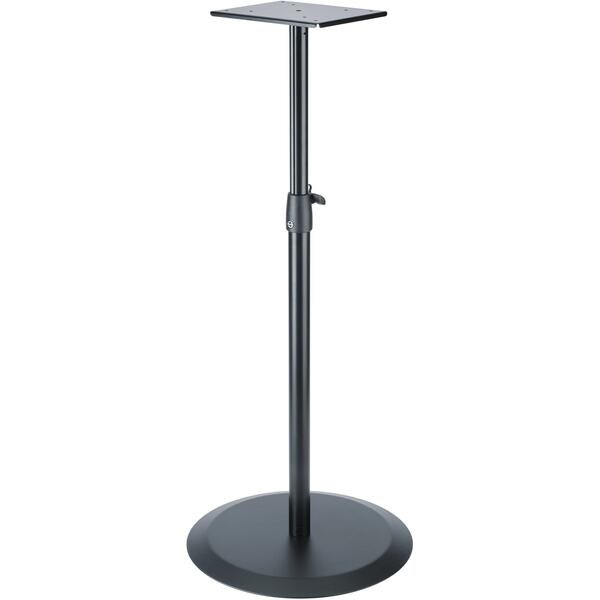 Tämä tyylikäs ja vakaa monitorijalusta pitää kaiuttimesi tukevasti ja turvallisesti paikallaan. Monitorin alle tuleva 205mm x 245mm jalustalevy kiinnitetään yksinkertaisesti 3/8" kierreliitäntään. Voit myös kiinnittää kaiuttimesi suoraan tähän 3/8" kierreliitäntään. Korkeudensäätö on turvallista turvakoukun ja säätöruuvin yhdistelmällä. Käyttökorkeus on säädettävissä viidessä 50mm askeleessa 950mm ja 1450mm välillä. Akustista eristystä varten telineen mukana toimitetaan neljä kierrettävää piikkiä ja neljä itsekiinnittyvää kumitulppaa.