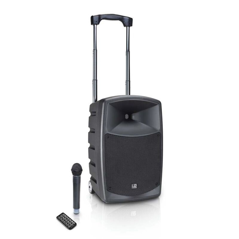 - Akkukäyttöinen kaiutin, jossa ingegroitu kolmekanavainen mikseri, langaton mikrofoni sekä bluetooth-vastaanotin