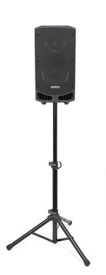 Tuotenumero 1060512Tehokas ja helposti kuljetettava 300W 10"aktiivikaiutin ladattavalla akulla, Bluetooth®-yhteydellä ja langattomalla käsimikrofonilla