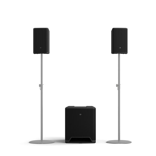 - Powered 2.1 PA with 12" subwoofer and two 6,5" satellites
