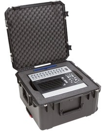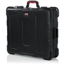 Mixer case, 20″ x 25″, molded polyethylene, tricot-lined foam, Velcro wedge, wheels, pull-out handle, rubber...