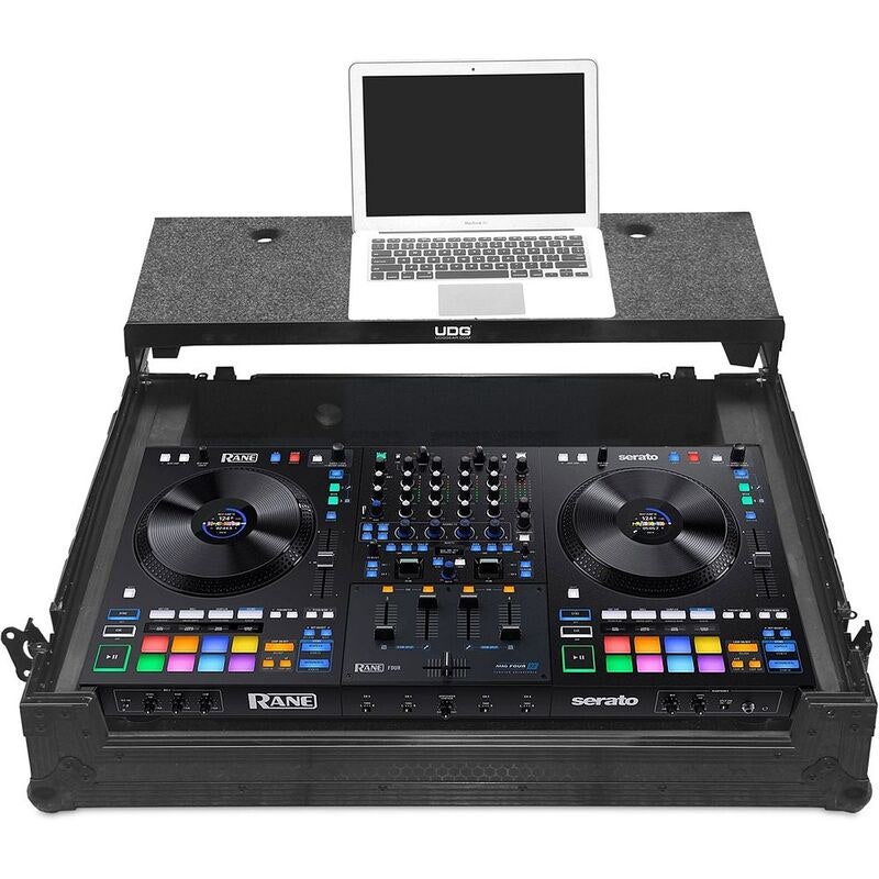 UDG Ultimate Flightcase Rane Performer/Four Black Plus (L&W) – Heavy-Duty Flight Case with Wheels and Laptop Shelf