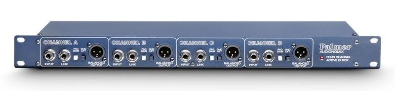 Aktiivinen 4-kanavainen DI-boksi. Jokaisessa kanavassa on jakkitulo sekä rinnakkaislähtö signaalin läpivientiin. Vaimentimella (-30 dB) voidaan kytkeä joko linja- tai kaiutinsignaali.