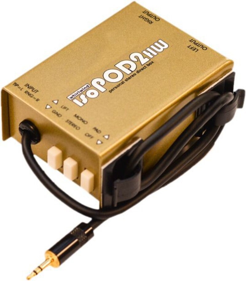 Signaalin sisäänmeno kiinteällä 3,5mm (1/8") johdolla, Ulostulo muuntaja balansoiduilla XLR-liittimillä.