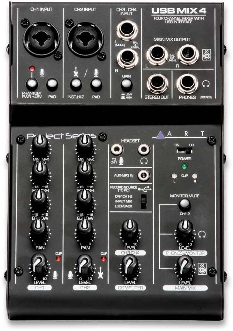 The ART USBMix4 is a great starting point for building a personal home studio. Perfect for podcasters, songwriters or at home movie makers looking for a simple solution for recording voiceovers, location recording or adding music to your projects using any Mac or PC.