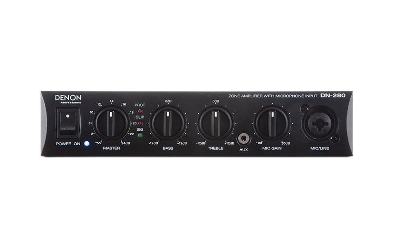 If you need a compact, high-powered amplifier that sums stereo signals into a mono output for paging, P.A. announcements and background music applications, the Denon Professional DN-280 is the ideal solution. With a space-saving, one-half rack space profile, the DN-280 features a microphone input for paging, a front panel 3.5mm (1⁄8-inch) AUX input and stereo analog inputs (summed to MONO) for signals from external playback devices such as an iPhone or stereo tuner.