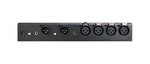 - Liitännät: 4: naaras XLR, 2: uros XLR, 3: (3.5mm), 1 Center Negative power jack.