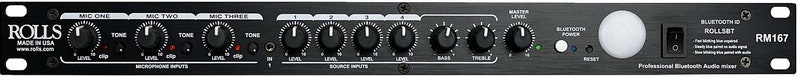 The ultimate single rack space mixer meticulously crafted for the install/contractor market, now equipped with Bluetooth connectivity. This versatile unit brings together three balanced microphones and four stereo sources, seamlessly blending them into mono or stereo balanced outputs.
