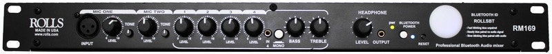 RM169 on kuusikanavainen mikseri, joista yksi on myös Bluetooth-sisäänmeno. Kaksi mikrofonisisäänmenoa ja neljä stereo-RCA sisäänmenoa. RM169 sopii hyvin asennuspaikkoihin joissa on vähän tilaa. Bluetooth-vastaanotin toimii pitkälläkin kantomatkalla ja erinomaisella äänenlaadulla. Balansoimattomat RCA ja balansoidut XLR-ulostulot helpottavat kytkentöjä.