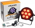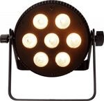 The SLIMPAR HEX 7 features seven 10W diodes combining red, green, blue, white, amber, and UV. This configuration provides a wide color palette, suitable for both warm halogen-like lighting and ultraviolet effects.