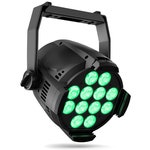 - 12 x 12 W 6-in-1 RGBAWUV LED with 4,700 lm luminous flux