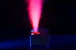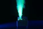 This 1200-watt unit produces a vertical fog stream up to approximately 5 meters in height. It features 9 built-in RGB LEDs that illuminate the fog on output, creating defined and colored effects. The machine includes a 1.2-liter tank with level indicator and allows for up to two minutes of continuous use. Supplied with both wired and wireless remote controls.