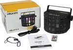 Helios 2 supports automatic and sound-activated operation. For more precise control, DMX input and output are included. The unit is suited for both beginners and users requiring more control options.