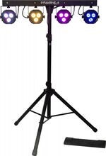 Tuotenumero 1091315Multi-effect bar, 4x RGB LED PAR, 4 strobes, DMX up to 24 channels, footswitch remote, power-chaining, adjustable stand, carrying bag, IP20