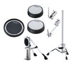 - Setti sisältää: Virveli harjoitusalustan, 8" pikkutomi-harjoitusalustan ja kiinnitys-clampin, 9" lattiatomi-harjoitusalustan piktällä kiinnitystelineellä ja Bassorumpu-padin omalla telineellään
