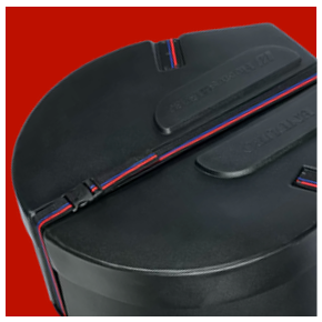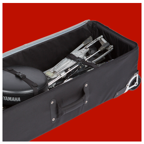 Pyörillä ja vetokahvalla varustettu symbaalikotelo, joka on suunniteltu kahdelletoista symbaalille (maks. 24")