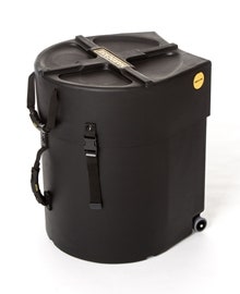 Tuhdisti topattu laukku 14" x 12" rummulle. Laukussa on olkahihna, kantokahva ja tasku varakalvoille