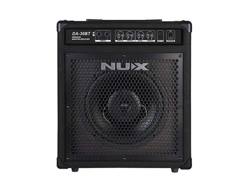 NUX DA-30BT on kompakti 30 W rumpumonitori, jossa on 10” koaksiaalikaiutin, taajuuskorjain, Bluetooth-yhteys ja kaksi sisääntuloa erillisillä volume-säätimillä.