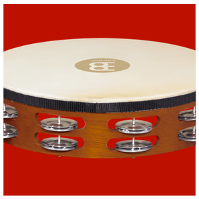 Viritettävä 10" puutamburiini vasikannahkakalvolla, 10 helistinparia. Mukana viritysavain
