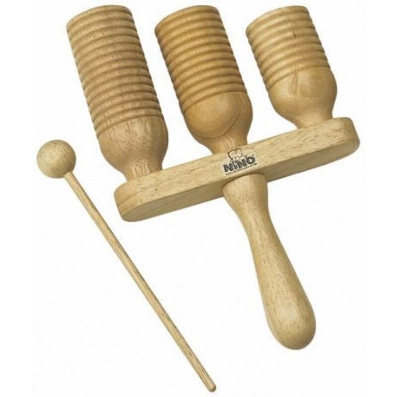 Tuotenumero 1064058Puinen Agogo, joka soi selkeästi ja voimakkaasti. Nino Agogoa voi soittaa kahdella tavalla. Sitä voi lyödä mukana tulevalla puisella malletilla tai sen pintaa voi raaputtaa quiron tapaan. Agogo antaakin paljon mahdollisuuksia mielikuvitukselle. Tämä Agogo on varustettu kolmella putkella tavallisen kahden sijaan, joten äänimaailma on entistäkin laajempi.