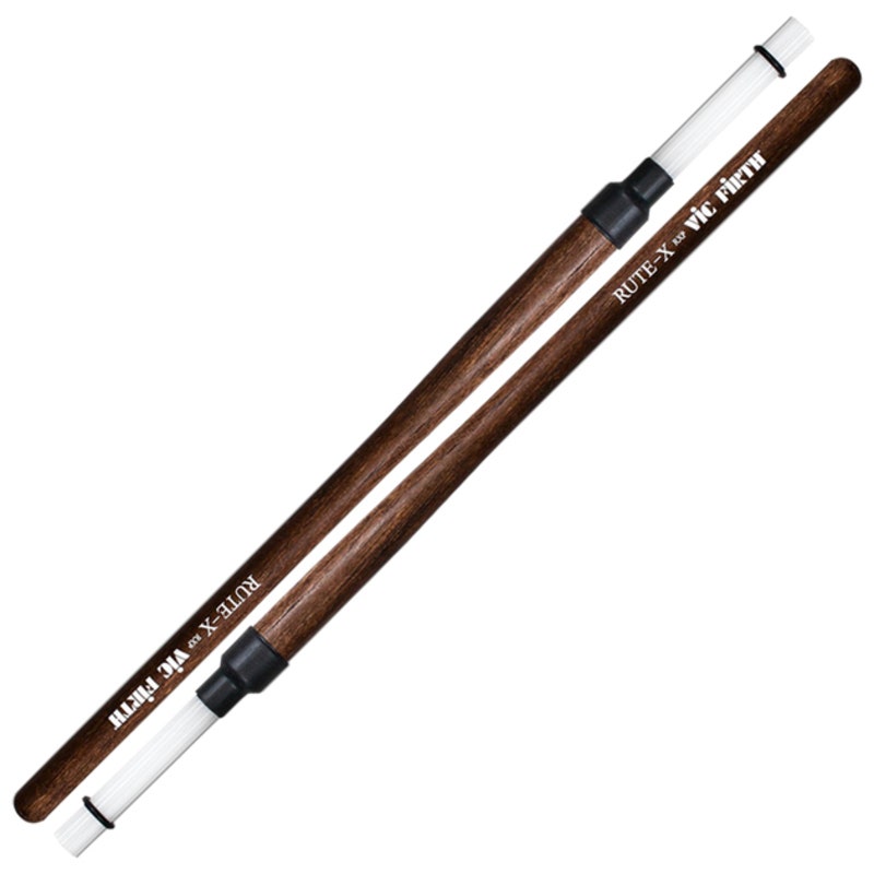 X-Rute-kapula, jossa 10 kestävää synteettistä muovipuikko niputettuna yhteen. Tämä kombinaatio tarjoaa lämpimän ja pehmeän soundin rumpuja ja symbaaleja soitettaessa.