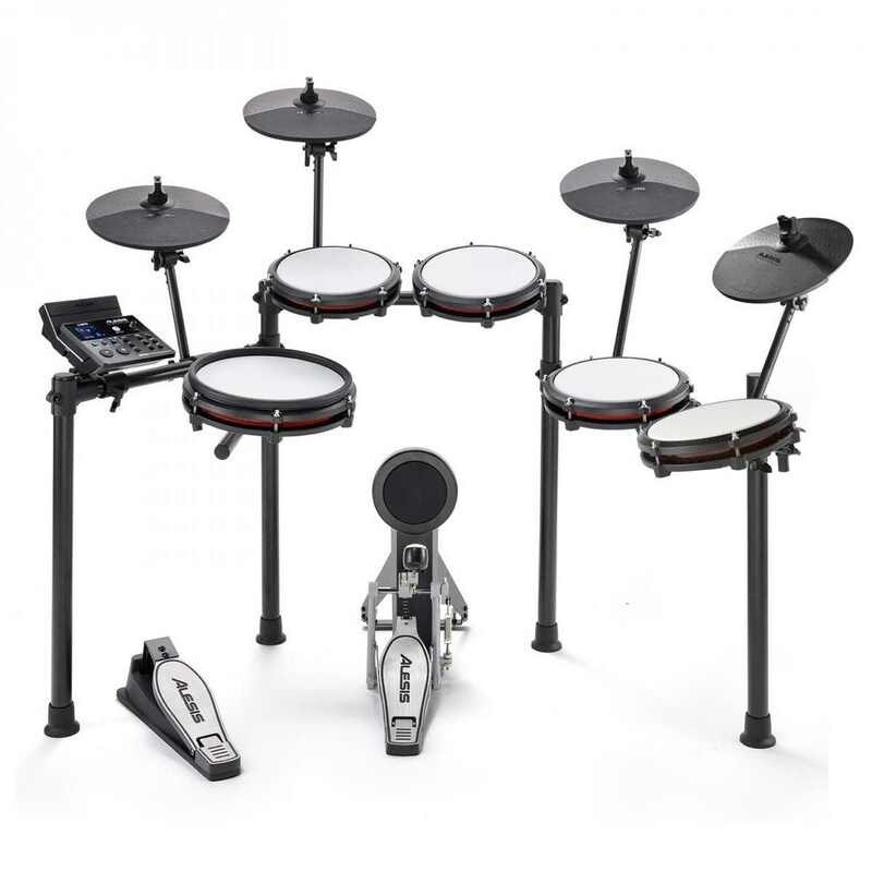 - Family-friendly practice with ultra-quiet Alesis mesh drum heads