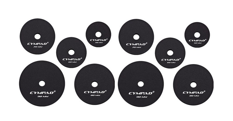 10 kpl eri kokoisia Cympad moderator-lätkiä (sis. 2 x seuraavia demppareita: Ø 50, 60, 70, 80 ja 90mm)