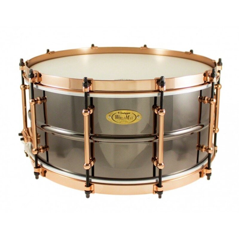 Worldmax BK-6514SFXG on näyttävä ja laadukas 14x6,5" messinkivirveli, jonka 1,3 mm paksu black nickel -pinnoitettu messinkirunko tuottaa täyteläisen, lämpimän ja selkeän soinnin erinomaisella dynamiikalla. Aztec Gold -viimeistellyt Single Flange -vanteet ja tube lugien yksityiskohdat tuovat virveliin elegantin ja erottuvan ilmeen, joka tekee vaikutuksen niin lavalla kuin studiossa.