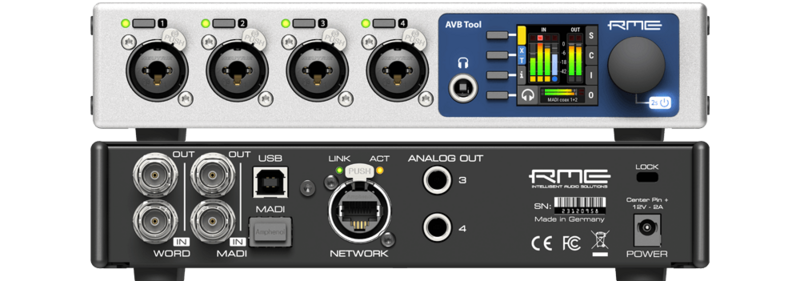The RME AVB Tool combines MADI and deterministic AVB networked audio with four high-precision microphone, instrument and line level inputs, plus headphone and separate line level outputs. Following RME’s concept of maximum versatility and connectivity, 128 channels of MADI I/O have been also added to this half rack 19” device.