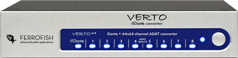 Dante is the de facto standard for networking audio equipment. With the Verto 64 it’s now possible to easily integrate up to 64 x 64 channels via ADAT into a Dante network. No matter which ADAT device you use – the Verto 64 makes all channels immediately avalilable in the network: “plug and play”.