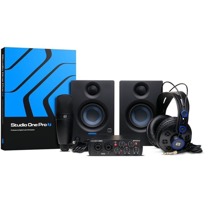 PreSonus AudioBox USB 96 Complete Bundle on kattava äänityspaketti, joka yhdistää laadukkaan äänen, monipuolisuuden ja käyttömukavuuden aloittelijoille ja kokeneille tekijöille. Paketti sisältää 2-kanavaisen USB-äänikortin, 3.5” Eris-studiomonitorit, M7 MKII -kondensaattorimikrofonin lisävarusteineen, HD7-monitorikuulokkeet sekä Studio One Pro -äänitysohjelmiston 6 kuukauden lisenssin.