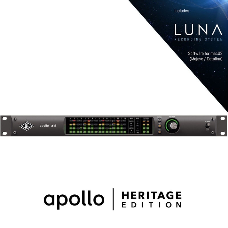Kun ostat Apollo X16 | Heritage Edition, saat mukaan "Rackmount Apollo Heritage Editions Plug‑In Bundle" ja "Realtime Analog Classics Plus Bundle", jotka sisältävät klassisia UA-plug-inejä legendaarisista kompressoreista, etuasteista ja taajuuskorjaimista.
