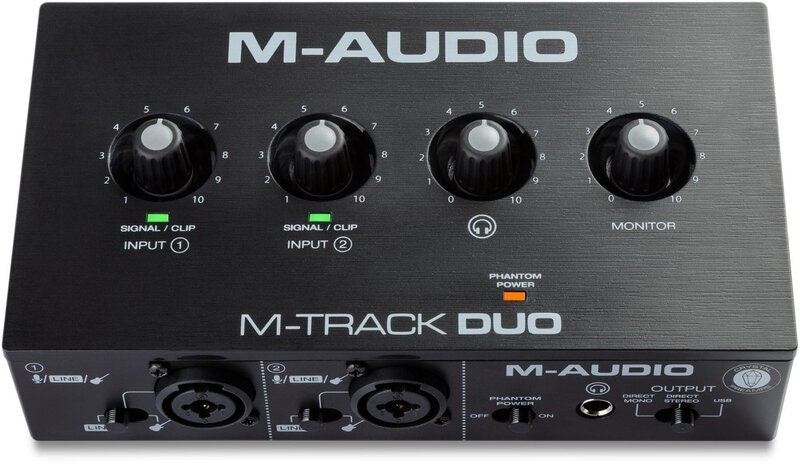- 2 x mikrofoni/linja/instrumentti-komboliitintä, M-Audio Crystal-etuaste