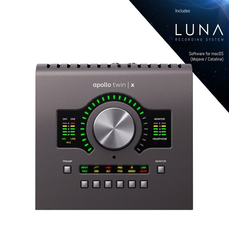 Unison-teknologiaa käytetään myös Apollo Twin X:n kahdessa etupaneelin instrumenttitulossa (Hi-Z). Käytössäsi ovat tarkat Fender-, Marshall-, Ampeg- ja muiden kitara- ja bassovahvistinmallien impedanssi- ja gain-sovitukset. Jotta Twin X olisi edeltäjiään parempi, Apollo Twin X:n audiomuuntimet on suunniteltu uudelleen, jolloin tuloksena on hätkähdyttävä 127 dB dynamiikka-alue sekä -117 dB THD+N -arvo. Apollo Twin X:stä irtoaa melkoinen määrä klassisia analogisointeja ja -äänensävyjä Realtime UAD Processing-teknologian avulla. Laitteen UAD-2 DUO tai QUAD Core-prosessoria hyödyntäen voit äänittää minkä tahansa UAD -plugareiden läpi — lähes nollalatenssilla — mukana on autenttisia plugareita kuten Neve, Studer, Helios, API, Lexicon, Manley, Fender ja Capitol Studios.