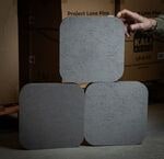 The price listed is for these Myriad which have a gray fabric front and dimensions 257 x 257 mm and 30 mm. There are 24 self-adhesive panels in a box.