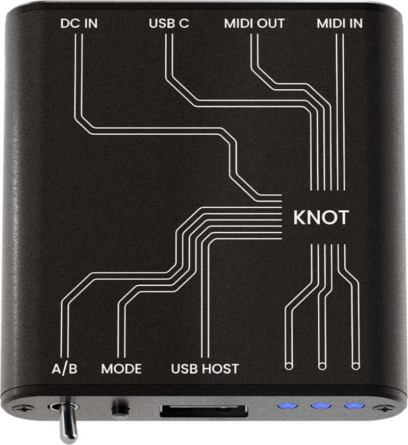 KNOT is a compact USB MIDI host that seamlessly connects traditional MIDI instruments, like synthesizers, groove boxes, or guitar pedals, with modern USB MIDI devices and controllers, including Intech Studios' Grid controllers. Whether in the studio or on the go, KNOT integrates smoothly into any setup and features A/B switchable TRS MIDI connectors for maximum flexibility.