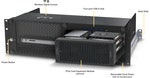 Built-in 400W power supply supports power-hungry cards including Avid Pro Tools | HDX, AJA® Kona® 5, Blackmagic Decklink 4K Extreme 12G, and Blufish444’s Epoch and KRONOS SDI cards. System powers on and off automatically with the connected Mac Studio.