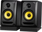 CLASSIC 5 Studio Monitor Pack sisältää kaksi KRK CLASSIC 5 -monitoria, kaksi 10’ XLR-M – XLR-F -kaapelia ja kaksi vaimennusvaahtopalaa optimaaliseen sijoitteluun.