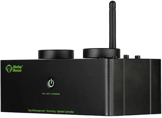 The Monkey Banana Zookeeper allows wireless or wired audio transmission between transmitter and Zookeeper. The streaming controller is suitable for living room hifi setups, gaming, music production, presentations and much more.... The Bluetooth transmission is in the 2.4GHz band. Included are the Zookeeper, a USB-C cable, RCA cable 2m, anti-slip feet.