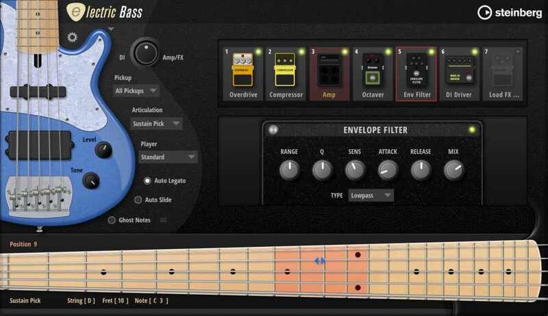 - Detailed sampled electric bass with seven playing techniques including fingerstyle, slap, muting and plucking