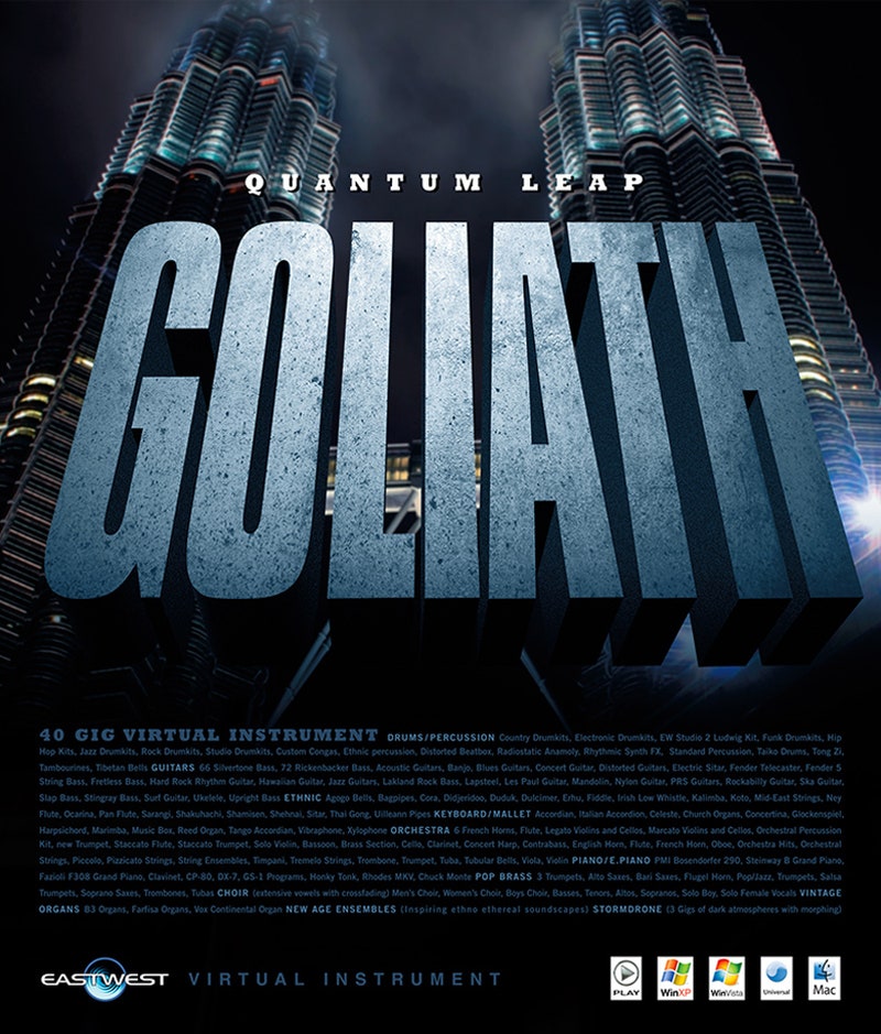 Tuotenumero 1056698Goliath sisältää yli 180 instrumenttia, mukaan lukien rummut ja lyömäsoittimet, kitarat, bassot, akustiset ja sähköiset pianot, kosketinsoittimet ja malletit, pop-brassit, orkesterinsoittimet, kuorot ja vokaalit, etniset instrumentit, new age -yhtyeet, morfisoivat atmosfäärit, synabassot, syntetisaattori leadit, sekä synteettiset padit.