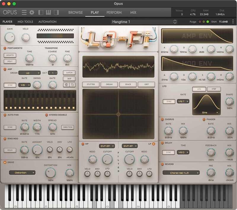 - Integrated effects such as distortion, delay, reverb, chorus, drive, compression, stereo widening and more