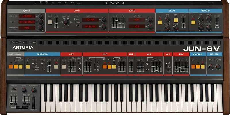 Jun-6 V is pure analog spirit presented on a silver platter. Modeled on the legendary Juno-6, its immediate colossal sound remains awe-inspiring to this day - optimized and enhanced for the modern music maker.