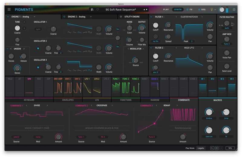 Pigments on modernille tuottajalle suunniteltu kaiken kattava ohjelmistosyntetisaattori, joka yhdistää 6 huipputason synteesimoottoria, väreittäin koodatun käyttöliittymän, vaivattoman drag and drop -modulaatioreitityksen, ensiluokkaiset efektit ja edistyneen sekvensoinnin. Muovaa äänimaailmaasi - valmiista miksaukseen sopivista preseteistä syvälliseen äänisuunnitteluun.