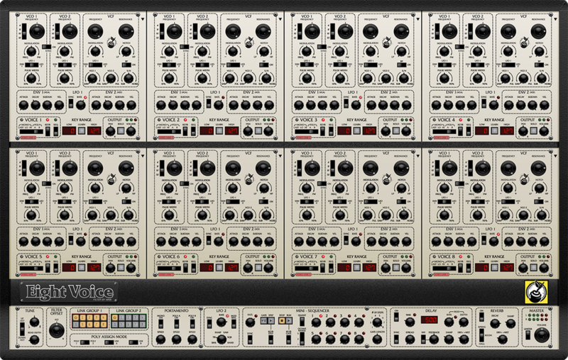 Eight Voice sisältää myös monipuolisen kahdeksan vaiheen "mini" -sekvensserin sekä korkealaatuisen viive- ja kaikuefektin. Se on täynnä ainutlaatuisia soundeja uskomattoman edulliseen hintaan!